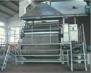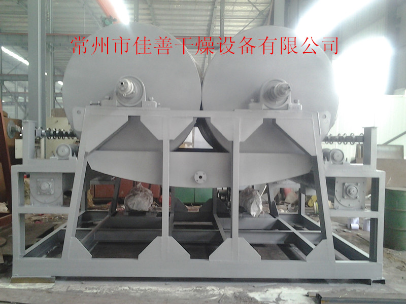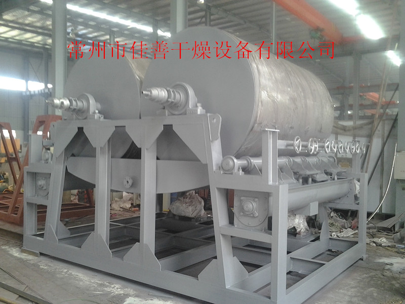 HG系列滾筒干燥機的工作原理是讓液體或泥漿狀物料在水蒸汽或其它熱載體加熱的滾筒表面形成薄膜.并在滾筒轉(zhuǎn)一圈的過程中便被干燥完畢.利用刮刀把產(chǎn)品刮下來.露出滾筒表面再次與原料接觸形成薄膜進行干燥。